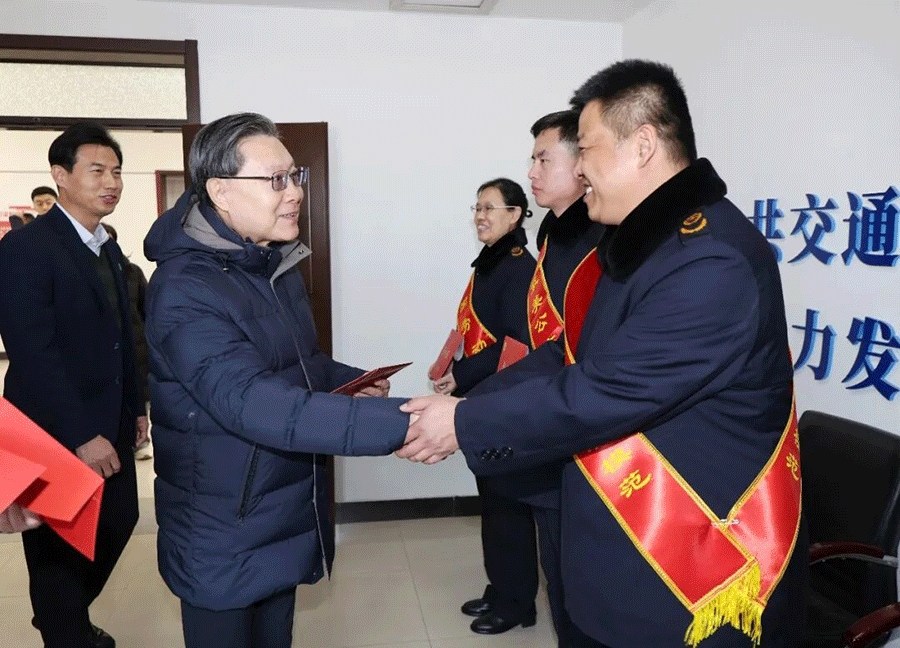 12月30日,全国人大常委会副委员长、中华全国总工会主席王东明带队,在沧州公交集团第四公司,慰问劳动模范。