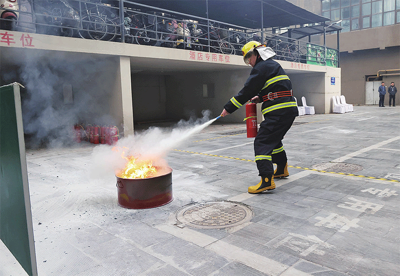 参赛选手在安保消防赛项中进行技能比拼 记者杨磊涛摄