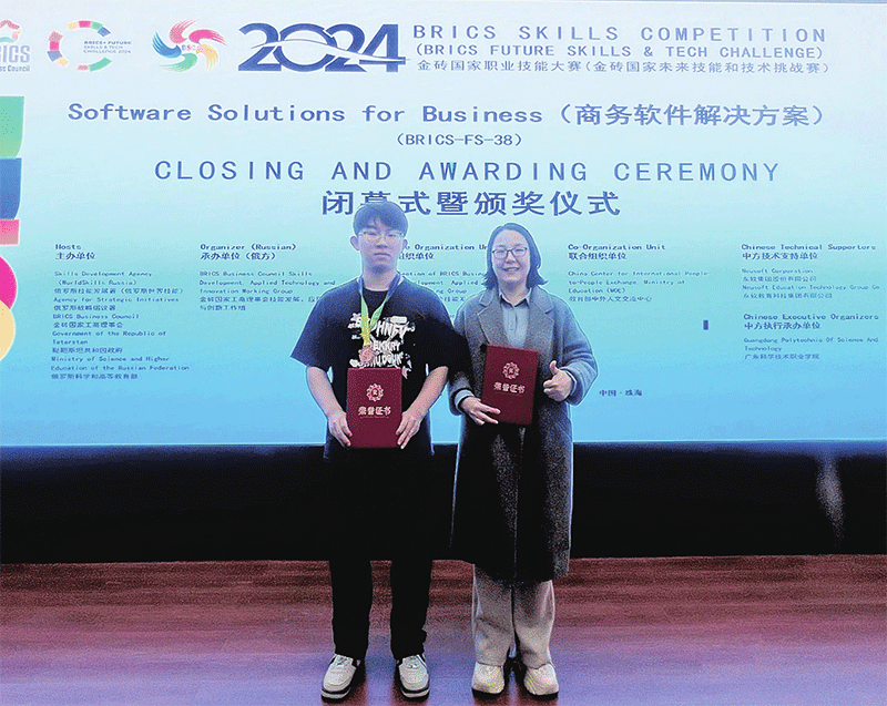 2024年,河北省金砖国家职业技能大赛商务软件解决方案赛上,李庆明顺利取得全省第一名的好成绩,并直升国际总决赛。“总决赛在珠海,有来自全世界的高手。”三个月的备赛时间,李庆明觉得刚刚好。“我喜欢短时间高强度,并不喜欢把战线拉得太长。”这三个月里,李庆明每天泡在实训室,模拟竞赛场景做压力测试,代码敲了一遍又一遍,手指磨出了薄茧。