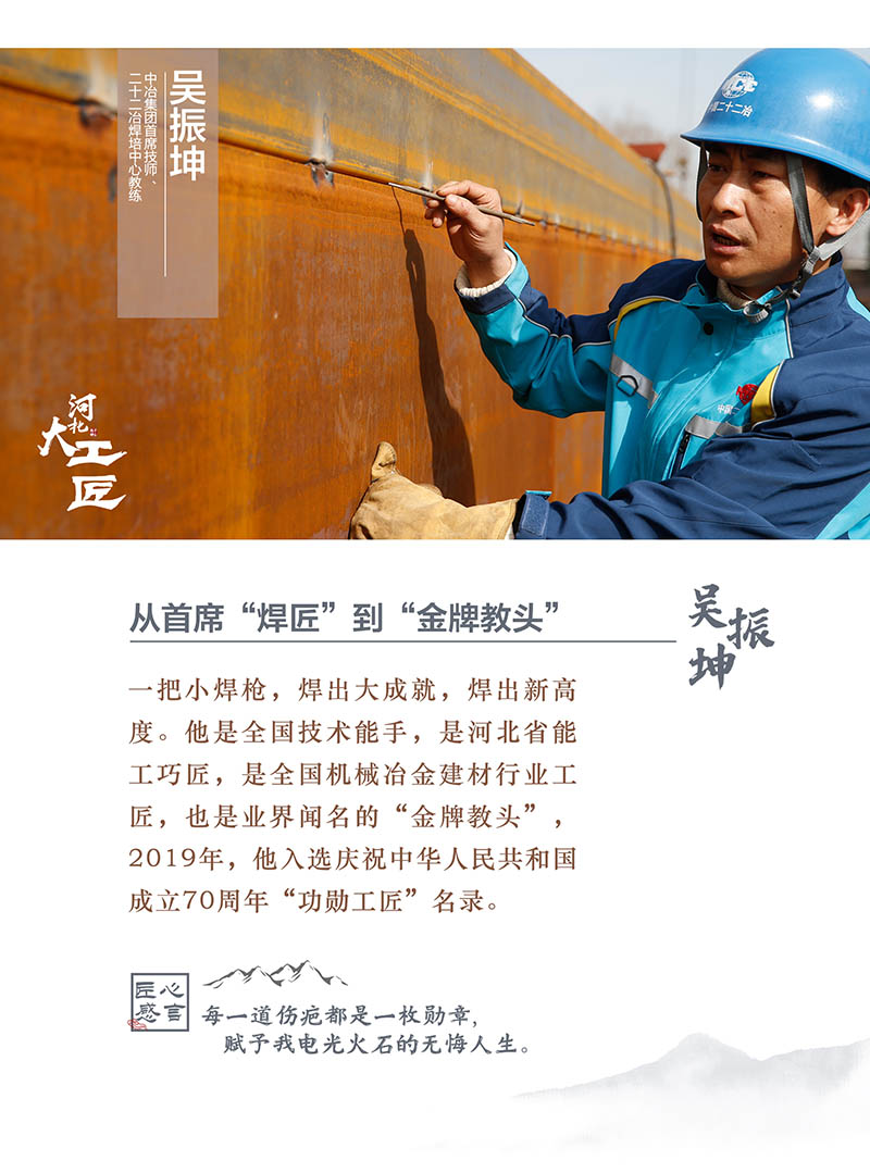 盛开的焊花激发着吴振坤浓厚的兴趣,也舞动着他的青葱岁月。23年坚守一线,他的双手已无数次被超高温焊渣烫伤,留下了许多伤疤,但他觉得这些伤疤都是他的“勋章”,是他进步的见证。“我身上的每一道伤疤都有一个故事,它们见证了我的成长。”吴振坤坦言,焊工岗位艰苦,接的多是险活累活,但他也庆幸能有这样一段电光火石的人生经历。